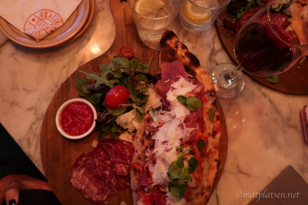 I går kväll var jag ute och åt med några grannfruar på Fratelli. Åt sååå himla gott, det finns ingen godare (fin)pizza än på Fratelli tror jag?! Min favorit är calzonen – lägger till taleggio i och tryffelsalami vid sidan av, 10/10 poäng får den. Magisk! Och drinkarna är grymma. Började med en lakritshallonmojito som man drack ur ett lakritsrör, såå god! Och så fina glas, tror jag ska beställa ett par.