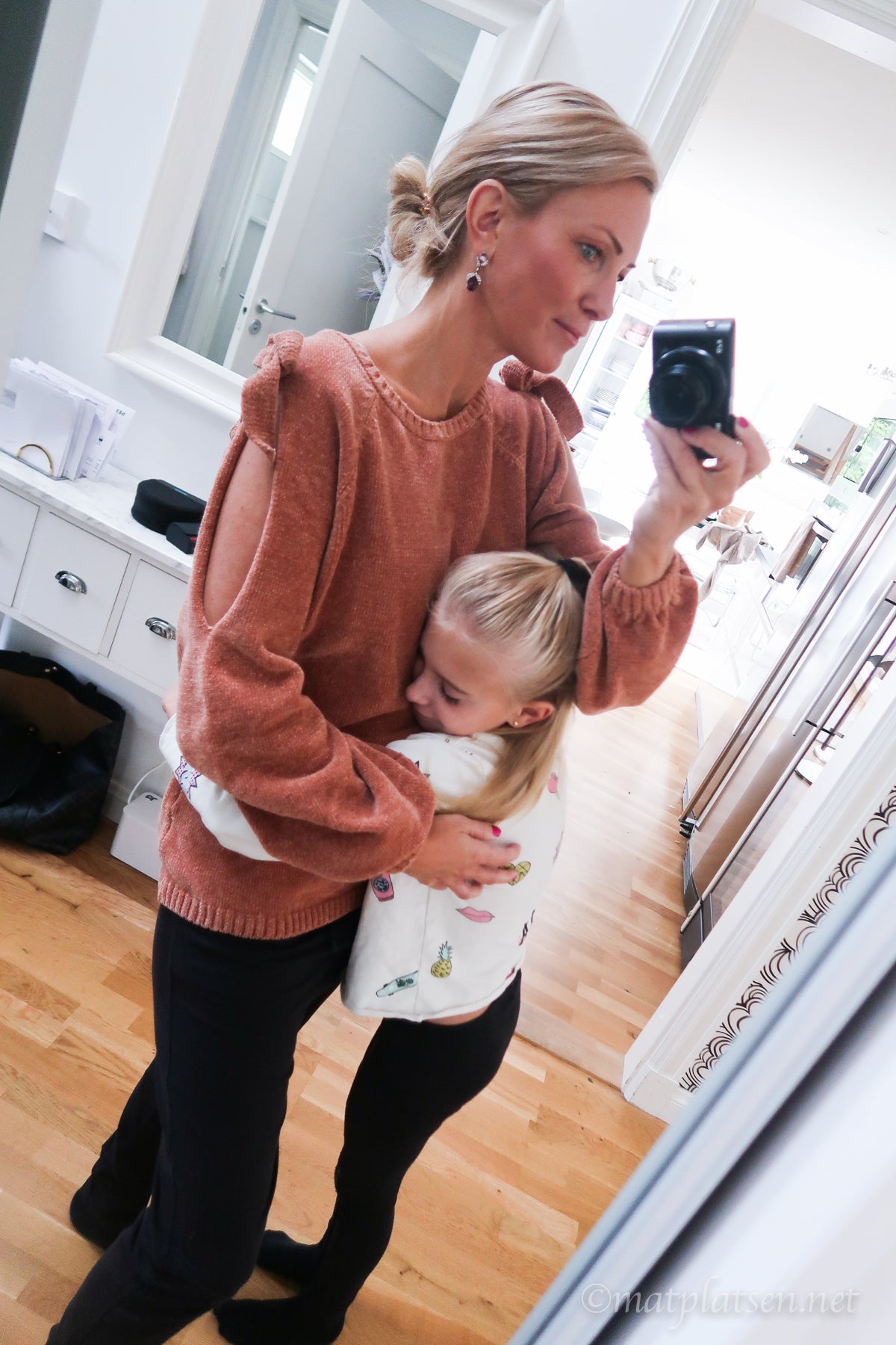 Dagens är mjukisbyxor (House of Lola) och höstig rostbrun myströja i chenille (tror jag det heter?) kan ju vara det mjukaste som finns. Söta detaljer! Finns HÄR.     Dagens första kaffekopp. En koffeinfri sådan 🙂 Pudrade över lite kakao, det doftar så hiiiimla gott. Choklad är livet! Fredagens bukett är forts fin men rosorna blev fula efter en dag? Skumt. De slokar inte eller nåt, de vita bladen blev bara bruna.     Yeah, fick tag i en granne som kommer över strax så nu ska jag sätta fart. KRAM