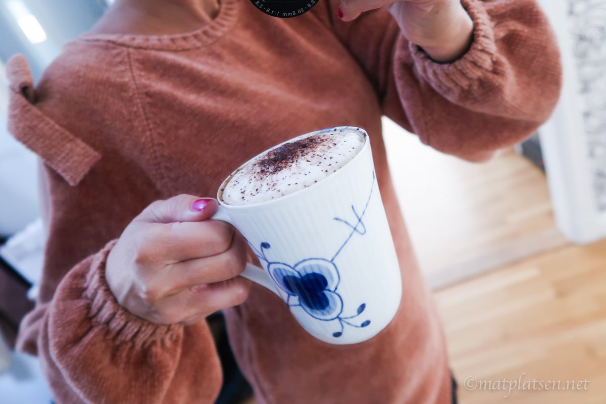 1. Nespresso! Men oftast (som här) gör jag snabbkaffe och häller i skummad mjölk (från Nespresso) för att det ska bli fluffigt och varmt 🙂 kram