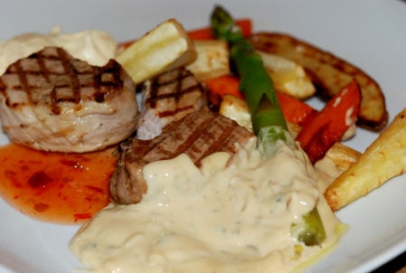 Hade mina föräldrar här på söndagsmiddag och det blev fläskfilémedaljonger, stekta i grillpanna, med ugnsrostade