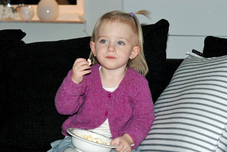 Pingu på tv och popcorn i egen skål. Det är lycka det 🙂 Helgmys! Montering