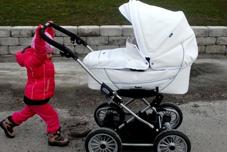 Jodå det blev en premiärtur med vagnen runt kvarteret, och en extra med stolta storasystern