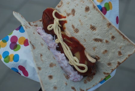 Till fredagens poolparty grillades det allehanda korvar med tillbehör. Lunch blev gyrossallad på campingen (där