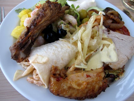 Lunchbuffe i skuggan. Ahhhhhh. Life is gooooood 😀 Vi har valt inklusive och det innebär frukostbuffé