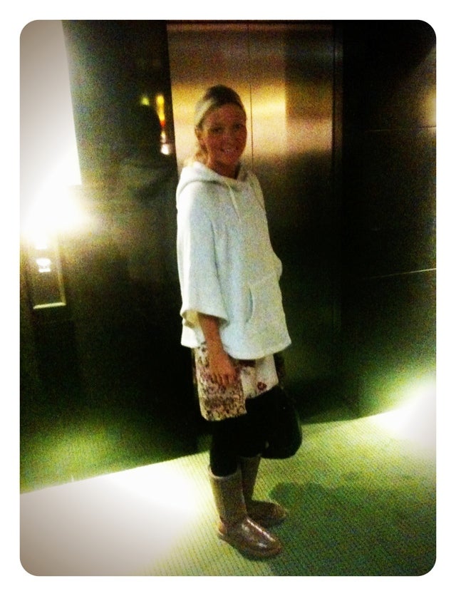 Påväg ner till frukosten. Nyvaken och okammad 🙂 inviger nyinköpta mjukis-ponchon. Love it!! Påminner om