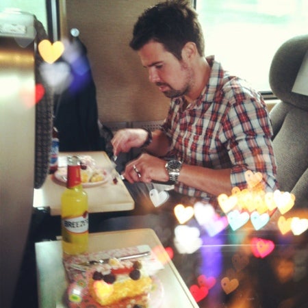 Här sitter vi på tåget och njuter av smörgåstårta och lugnet! Ahhhh Påväg mot Göteborg