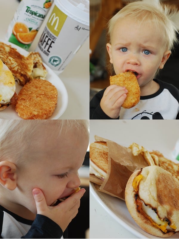 Vi styrde kosan mot Mc Donalds efter dagislämning och köpte med oss frukost hem, extra