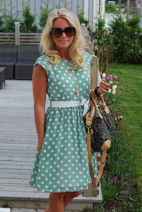 Helgens jag när vi var ute och åt med goda vänner. Prickig klänning/PernillaWahlgren (provrummet), solisar/Gucci, handväska/Mulberry,
