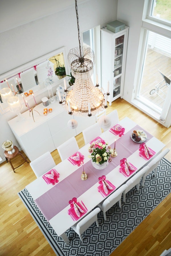 Matsalen sett från allrummet på övervåningen Hej igen med uppiggande färg! Jag har porslin