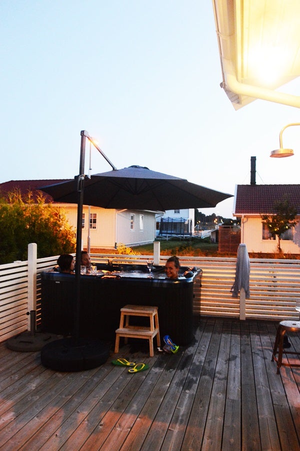 Vilken kväll! Satt i spabadet och drack bubbel långt efter att solen gått ner och