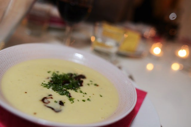 Hos Em på tjejmiddag och vinprovning! Krämig potatis&purjolökssoppa på menyn. Skål!