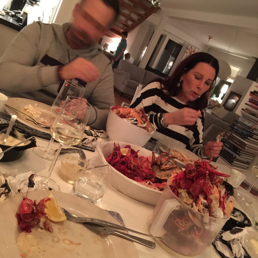 Och nu middag för de vuxna, desto gladare miner 🙂