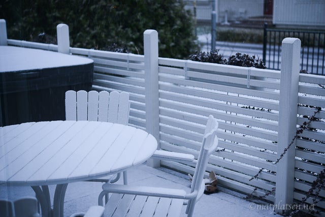 Godmorgon Vintersverige! Här vaknade vi till snöfall och det bara fortsätter falla