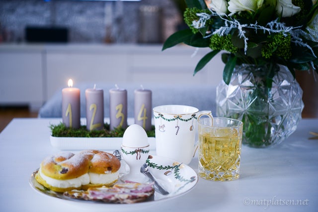Godmorgon 1:a advent Har precis avnjutit en riktigt smarrig adventsfrukost. Lussesemla (köpt