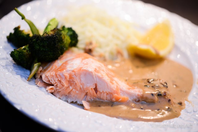 Hej hej Här kommer en favoriträtt. Lax med murkelsås och pressad potatis.