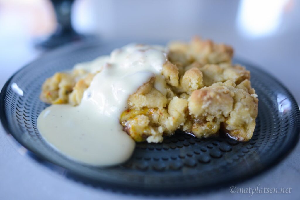 Hej hej Ni ville ha recept på äppelpajen med saffran jag testade med vaniljsåsen,