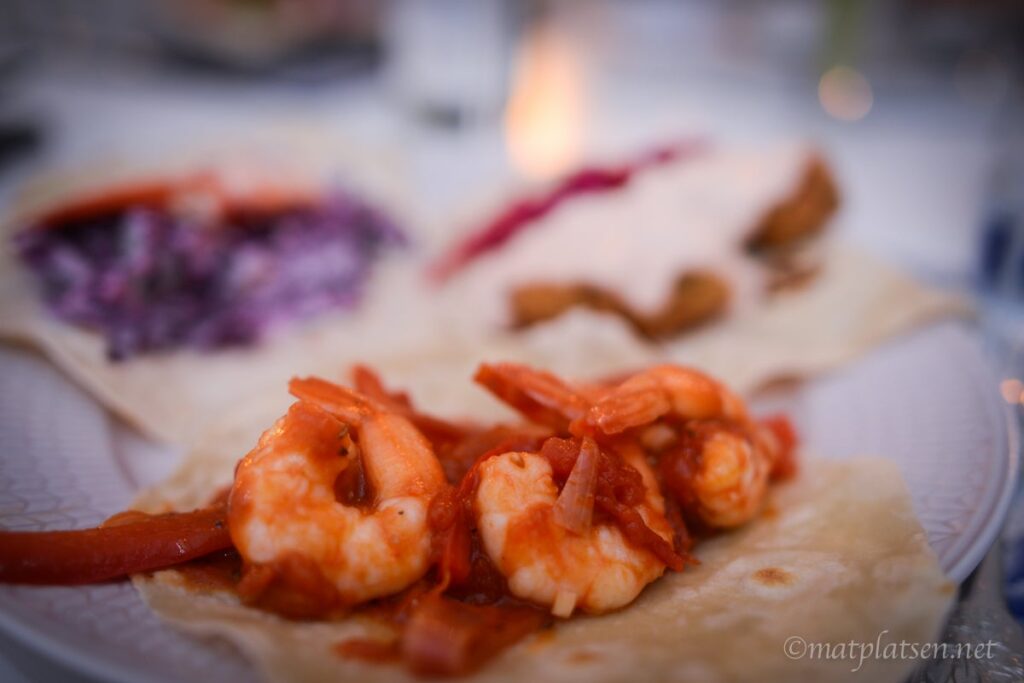 Hej hej Nästan variant på tur. Fajitas med king prawns (allt om mat).