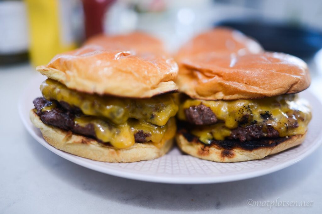 Dubbelcheeseburgare med råstekt potatis i ugnen