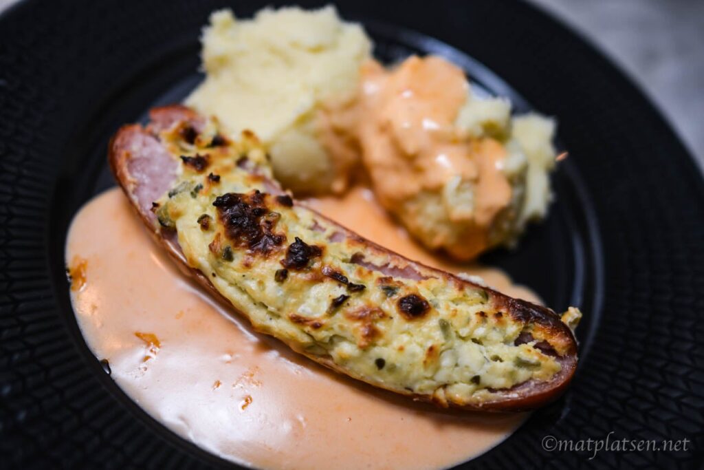 Hej hej Testade ett recept på gratinerad korv jag fått av en läsare. Sååå
