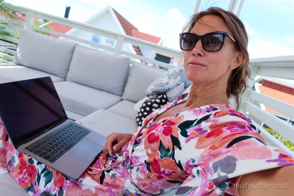 Godmorgon! Nyvaken och rufsig. Här blåser storm i dag. Varit ute och jagat spabadets tak