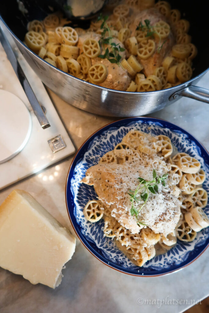Kylskåpsrens i ostlådan blev en pasta med ostsås innan vi for. Det finns ju en