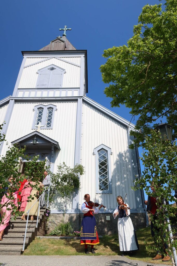 Utanför kyrkan spelades underbar musik, så stämningsfullt. Och kyrkan var världens gulligaste. Och in kom