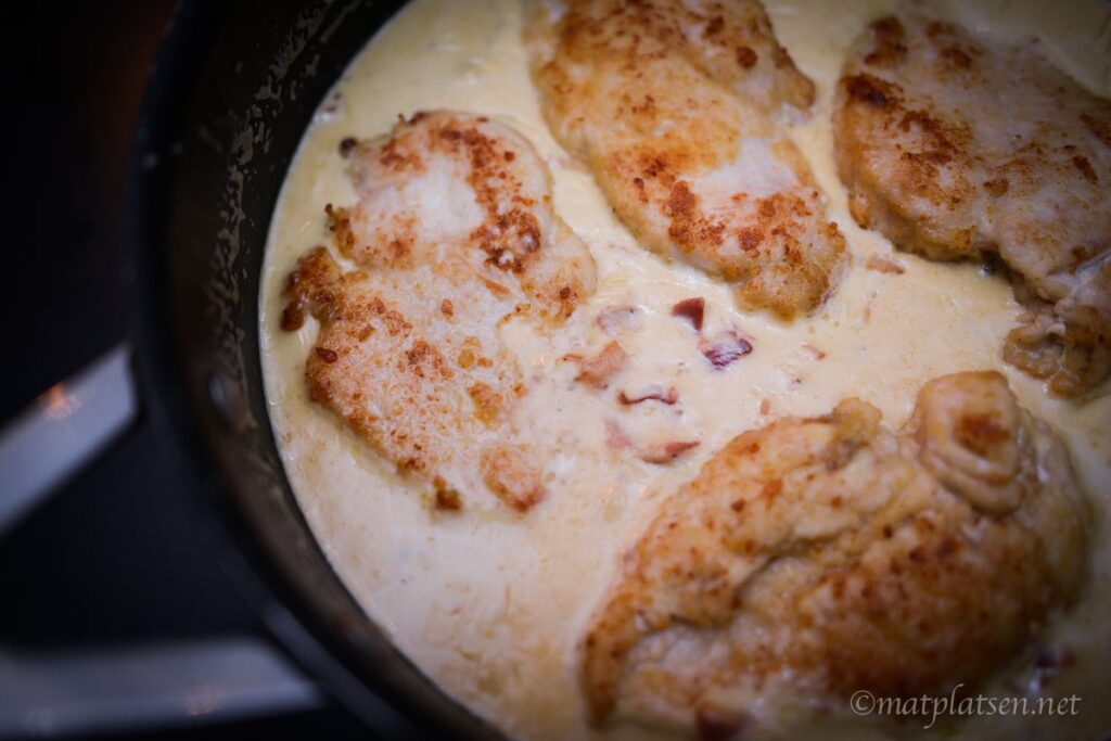 Tips på god middag. Panerad kyckling carbonara! Finns det nån som inte gillar carbonara? Lita