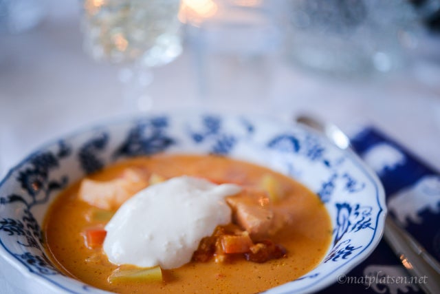 Enekl laxsoppa med röd curry