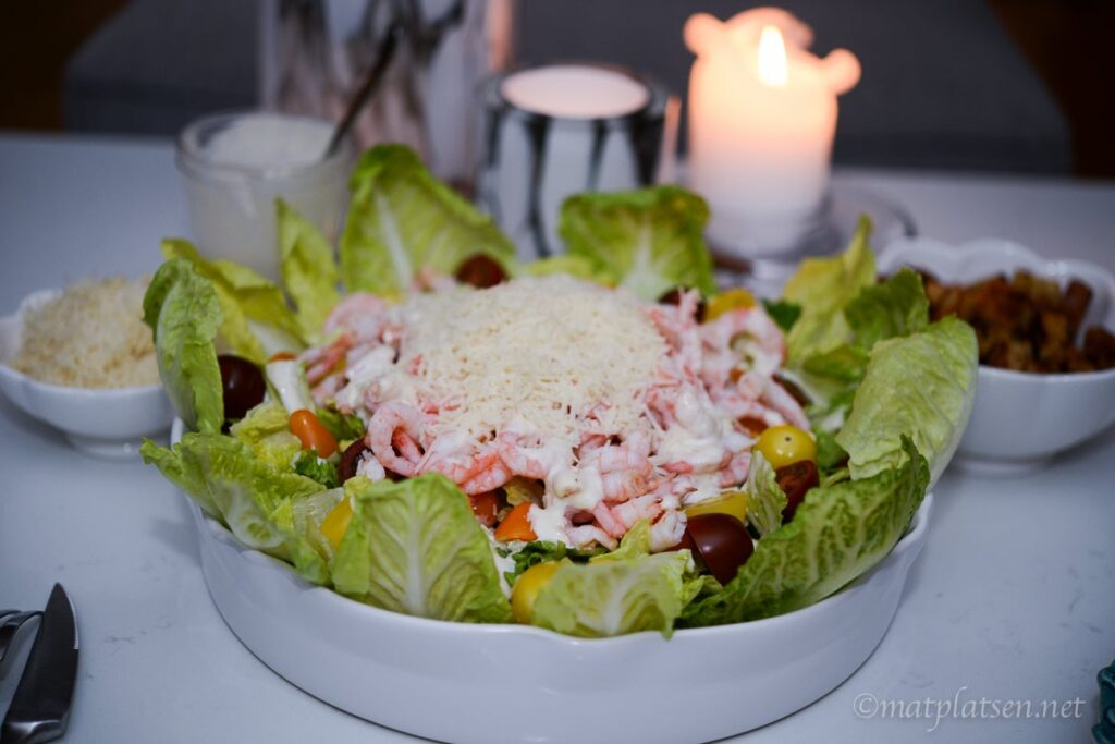 Caesarsallad med räkor och caesardressing