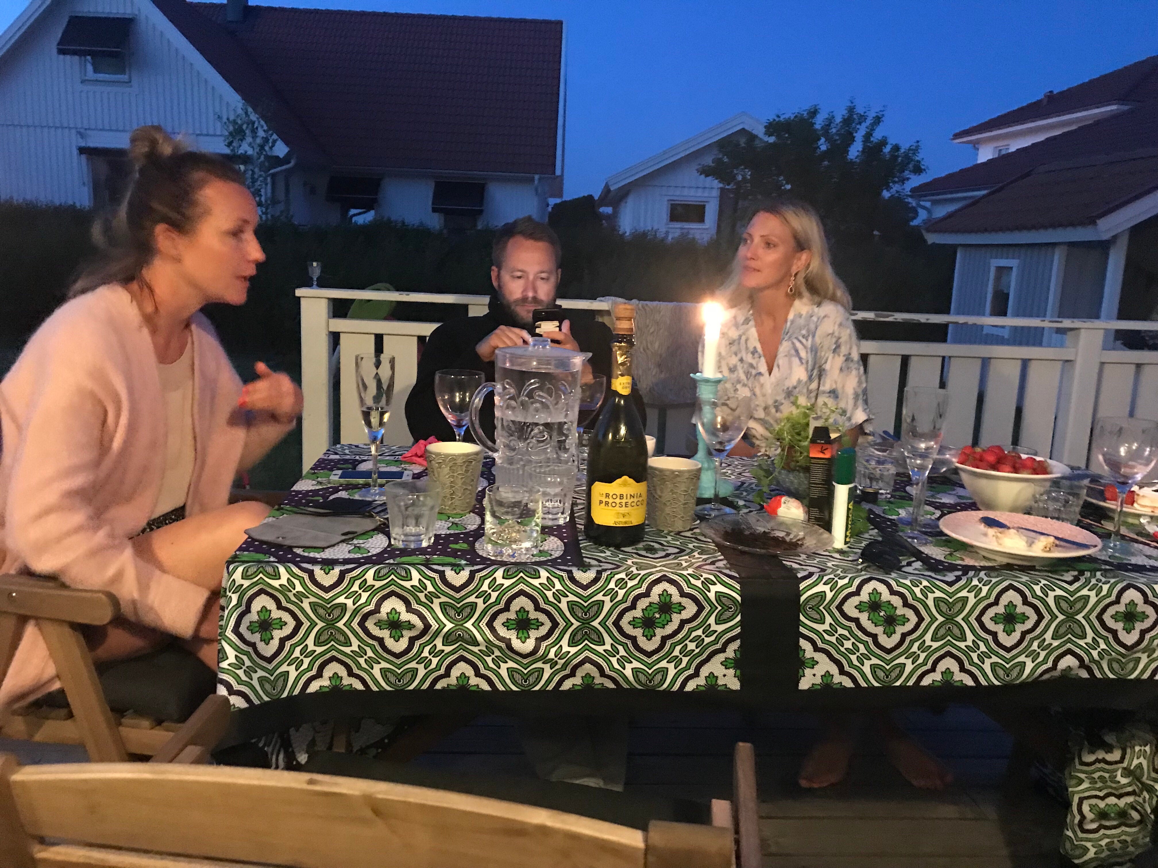 Lika trött som jag ser ut. Myggorna i n v a d e r a r oss. Får dock aldrig några myggbett (vad jag vet) men på de andra går de bananas. Micke stod inte ut och tog nyss (sovande) Sebbe och sprang hem..