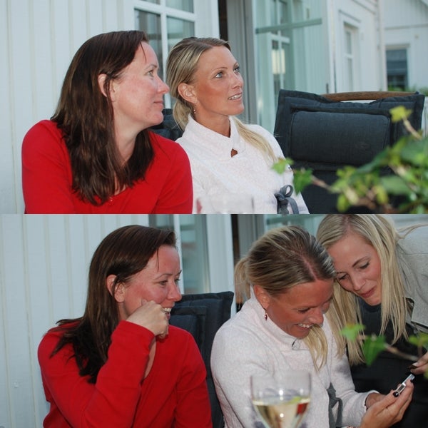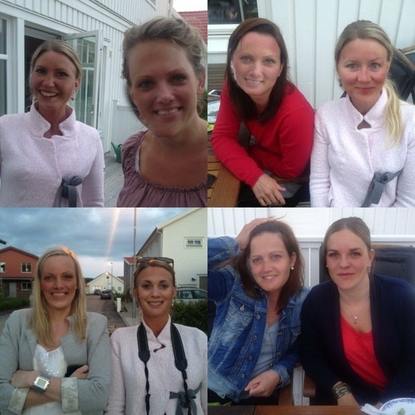 4. Hej hej! Har du tänkt på att din kompis (med grå kofta/kavaj) ofta är så lik din Olivia? Speciellt på bilden när hon skrattar väldigt? Lite kul tyckte jag!