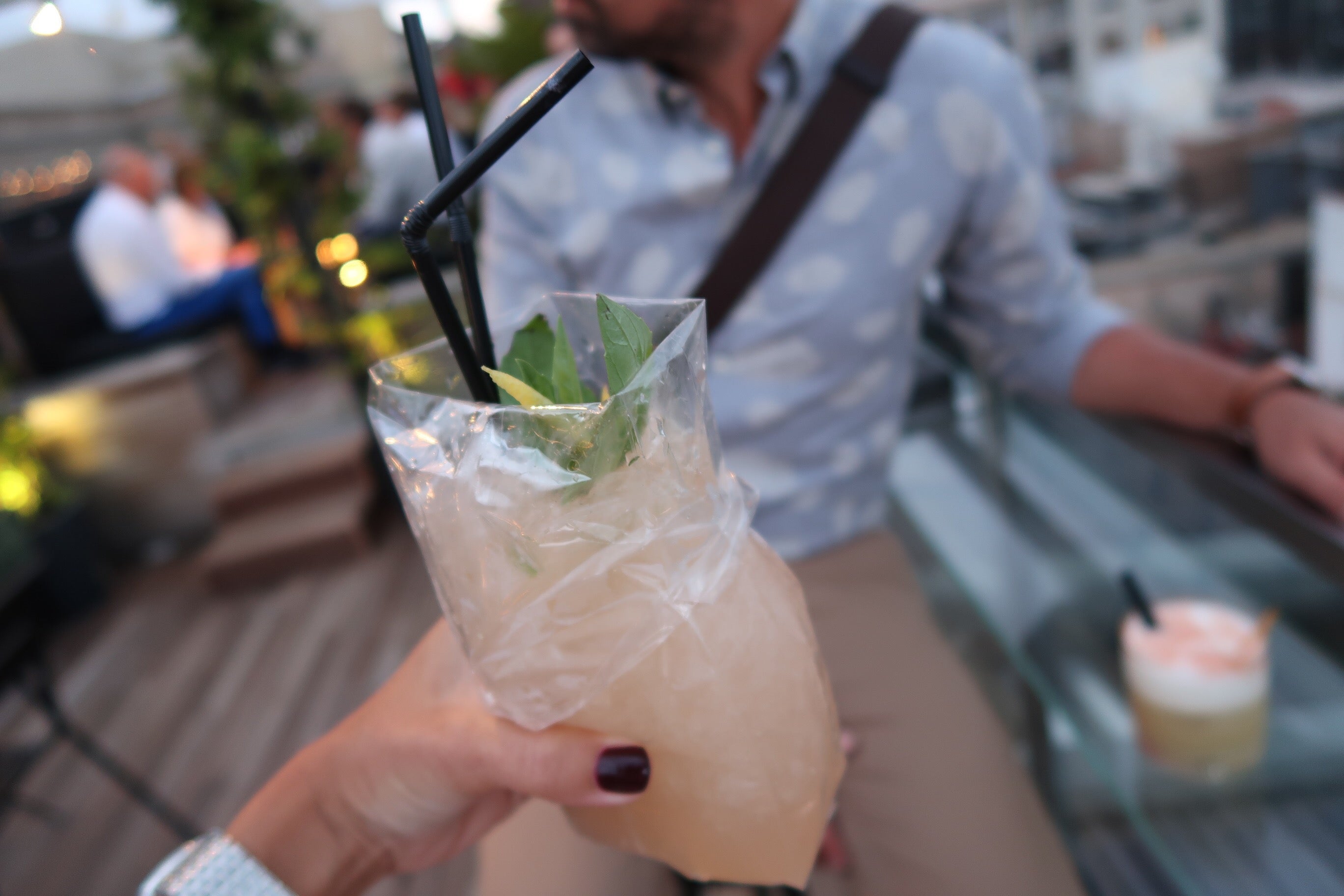 Jag fick en drink i plastpåse (!). Kul detalj (och god drink).