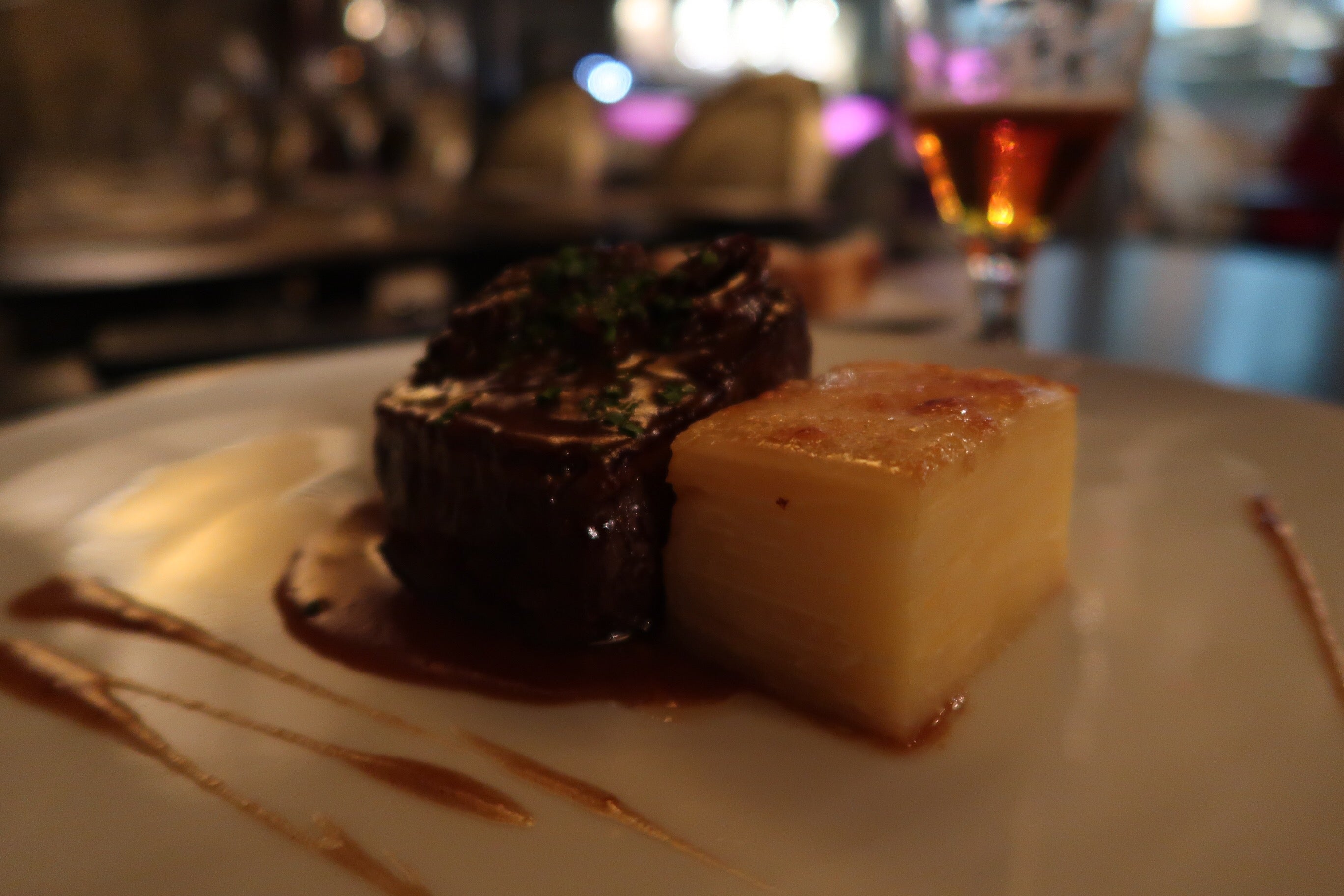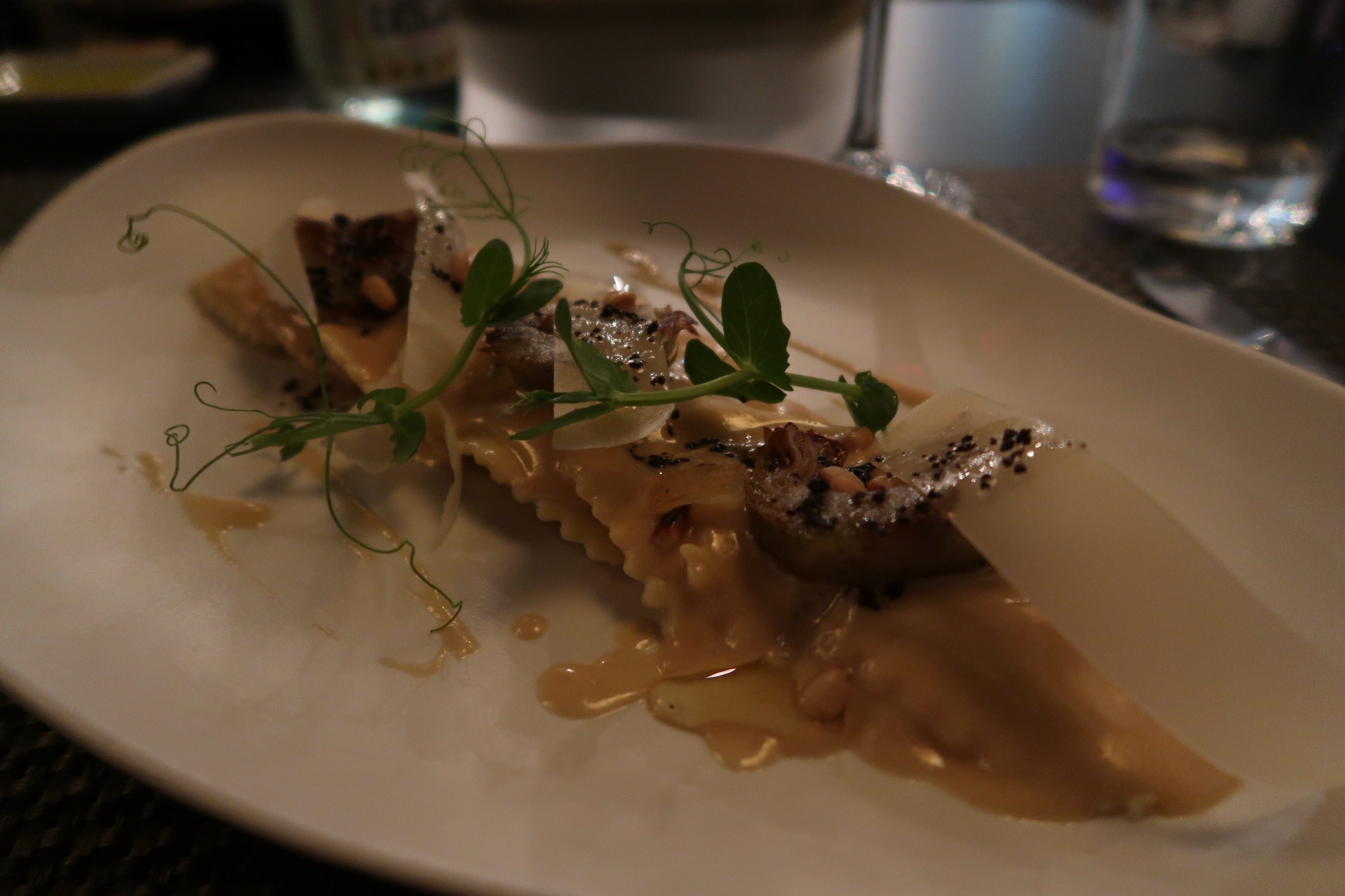 Jag valde vegetariskt, en burrata till förrätt som smälte i munnen (och hade räckt till 4 pers typ) medan Micke åt rostbiff med senapsglass (!) som var sååå himla god. Till huvudrätt åt han oxfilé med potatiskaka och murkelsås och den var helt perfekt och jag valde vegetarisk ravioli med kronärtskocka, buffé blance och kanderade citroner och detta var det aaaaaabsolut godaste jag åt på hela resan. Kommer drömma om denna!!