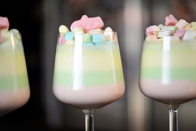 Gör ett lager i taget. Koka 2 dl grädde med 30 st bilar ( i samma färg) tills de smält helt. Häll upp i ganska små glas. Låt kallna i kylen så det stelnar (ca 1-2 h). Gör sedan ännu ett lager på samma sätt och låt stelna ovanpå och avsluta sedan med sista lagret. Dekorera med Ahlgrens bilar vid servering.