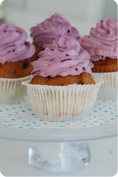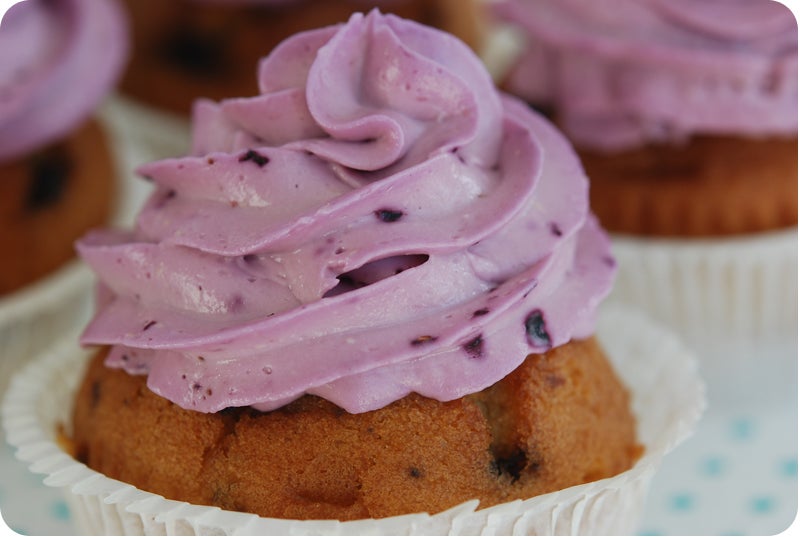 Cupcakesen är en enkel nödlösning när man inte har tid att baka.. Köp färdiga muffins i din butik (de flesta har ju antingen i bake off eller i förpackning) Byt formar på dem och spritsa på smarrig frosting. Voila! Frostingen till dessa är 50 g smör + 125 g philadelphia + 5 dl florsocker + en liten näve blåbär. Vispa de rumstempererade ingredienserna till en jämn smet och spritsa ut dem på muffinsen.