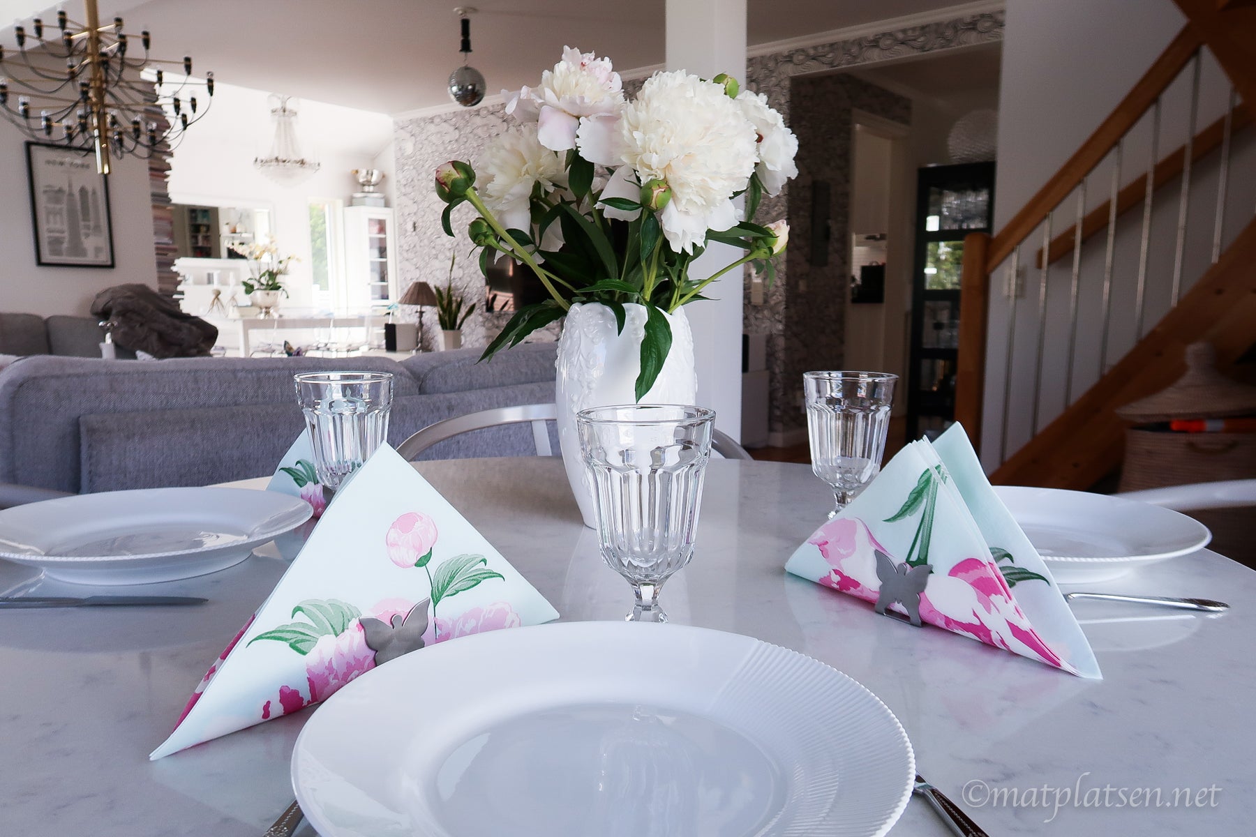Middag för tre i dag. Micke är på konsert. Egenplockade pioner och pioner på servetterna. Älskar piontiden! (men shit vad jag fick kämpa för att få bort alla myror i blommorna??) Servetthållarna från Carolina Gynning finns HÄR. Ursöta! (och gillar ni som jag snygga skärbrädor i stället för trista plastvarianter så är ju de HÄR underbara!)