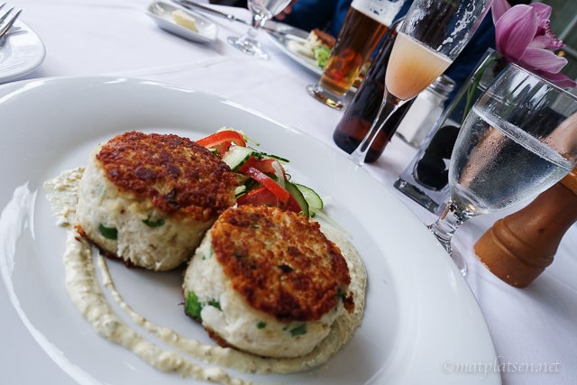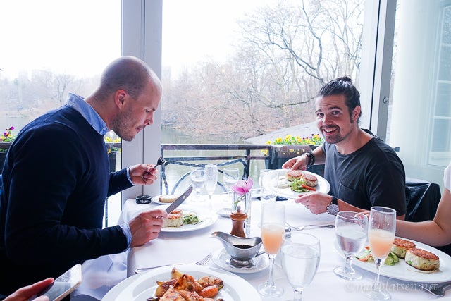 På fredagen hade vi bokat lunch på The Boathouse i Central park (dagen då det regnade typiskt nog. Var dock mest duggregn och varmt så det gick ingen nöd på oss men utsikten är ju lite mysigare med sol och blå himmel). Åt deras kända crabcakes men det räcker att äta dem som förrätt!! Vi tog dem som varmrätt och det blev lite för mkt så att säga 🙂 (och undrar ni vad det är för bröd på bilden så är det en mjuk pretzel”, säljs även lite var stans i små kiosker/stånd och är sååå gott)