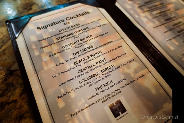 Vi börjar väl med hotellet 🙂 Vi bodde på The Empire hotel. Hemsidan hittar ni HÄR men vi bokade via booking.com. Det var bra pris på sviterna när vi bokade så vi tog en sådan, däremot var bilderna/texten som visades på de stora sviterna och vi fick en mindre hörnsvit så det var väl något missvisande. Nöjda ändå, rummet var rymligt och fräscht och man är ju inte där så mkt mer än när man sover. Hotellet var lite slitet men helt ok. Låg väldigt bra till och hade en mkt trevlig rooftop bar högst upp. Nu var större delen av utomhusdelen avstängd men om sommaren är där säkert jättehärligt. Även poolen var avstängd nu så den såg vi inte till. Men en stor bar under tak/inomhus fanns året om med fin utsikt. Extra kul att hotellet är med i serien Gossip Girl och gillar man Chuck Bass så fanns där en drink uppkallad efter honom 😉