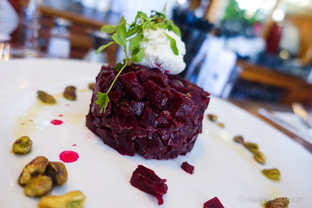 På lördagen blåste det så kallt så vi sökte skydd inne på en restaurang/krog och blev kvar där över både ett par drinkar och lunch. En av de få obokade måltiderna. Skönt med någon sådan men också väldigt skönt att bokat de flesta hemifrån så man visste var man skulle och fick plats. Maten här var sådääär och så är det ju lätt att det blir om man bara slinker in nånstans.