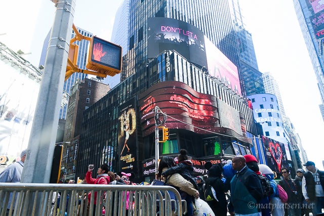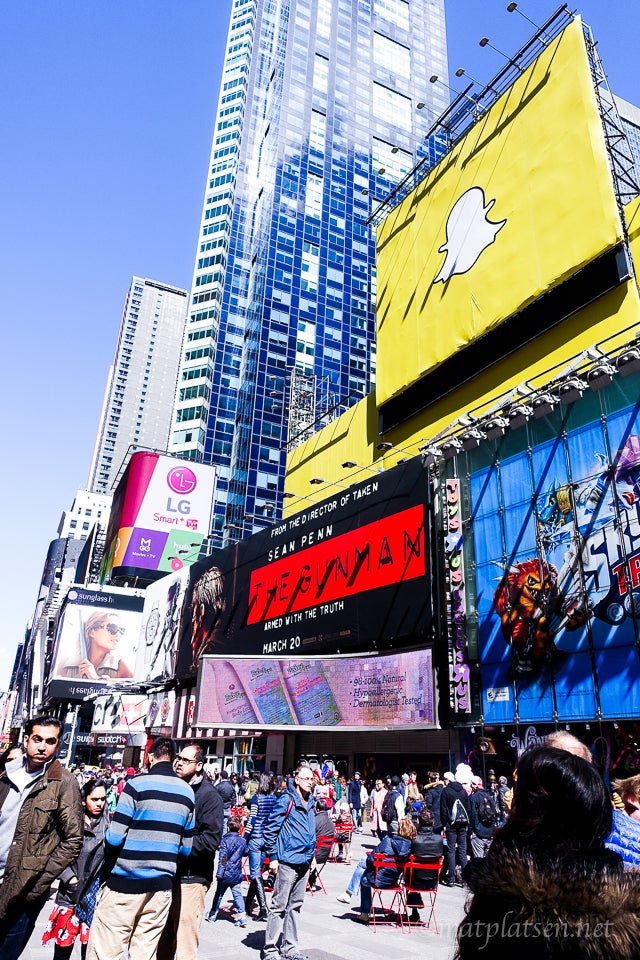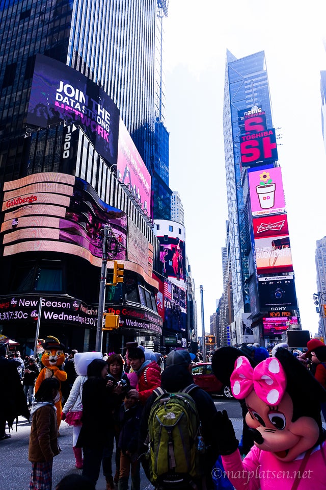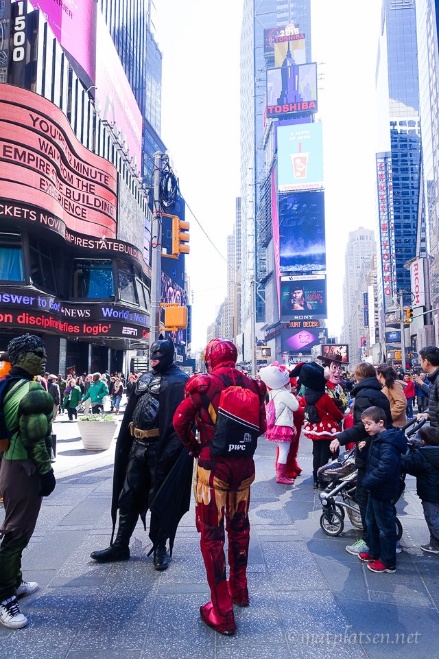 Times square måste upplevas. Fullproppat med folk natt som dag och dessa blinkande billboards överallt. Maffigt! Akta er för alla sagofigurer dock. Inte för att de är farliga men de vill såklart ha pengar för att ställa upp på kort visade det sig och tar man kort med några så bara säger det wrooooom så har halva Disney anslutit och sen vill alla ha pengar och blev skitsura när vi inte hade mer och tog alla lösa sedlar vi hade och muttrade surt. Haha. Men nu har vi lärt oss den läxan..