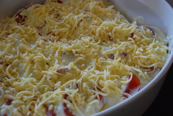 Häll det färdigkokta riset i en form. Skär kyckling i bitar (stek kycklingen om ni använder filé). Lägg det över riset. Skiva tomater och strö över. Blanda bearnaise + creme fraiche + riven ost och smaka av med salt & peppar. Bred blandningen överst i formen och gratinera i ugn, 225 C, tills rätten fått fin färg. Ca 15-20 min. Servera med en god sallad!