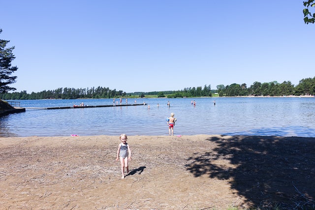 Nästa dag packade vi i hop och åkte ut till Hargebadet. Lite längre dit, tar ca en timme, och ligger vid Vättern. Iskallt 🙂 Fast nu var det ju så himla varmt i luften så det var helt ok ändå. Och väldigt väääldigt långgrunt. Finns även poolområde för den som gillar det bättre (kostar inträde). Restaurang och toaletter finns.
