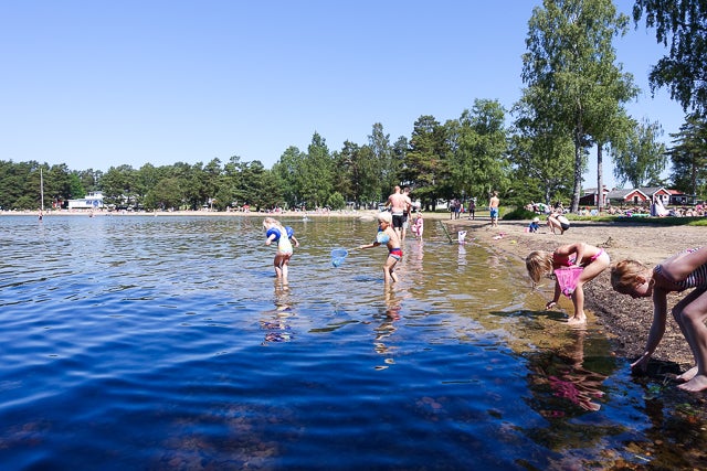 9. Åk till Katrinelund. Du svänger till vänster efter att du passerat Stora Mellösa. De har både gräsmatta och sandstrand. Det är väldigt grunt där och mycket barnvänligt och så får ju absolut inte glömma bort den goda maten på Katrinelunds Sjökrog. Bäcksjön i Östansjö är oxå bra. De har ingen sjökrog, men kiosk, omklädningsrum, toaletter, gräsmatta, sandstrand, brygga och grunt vatten.