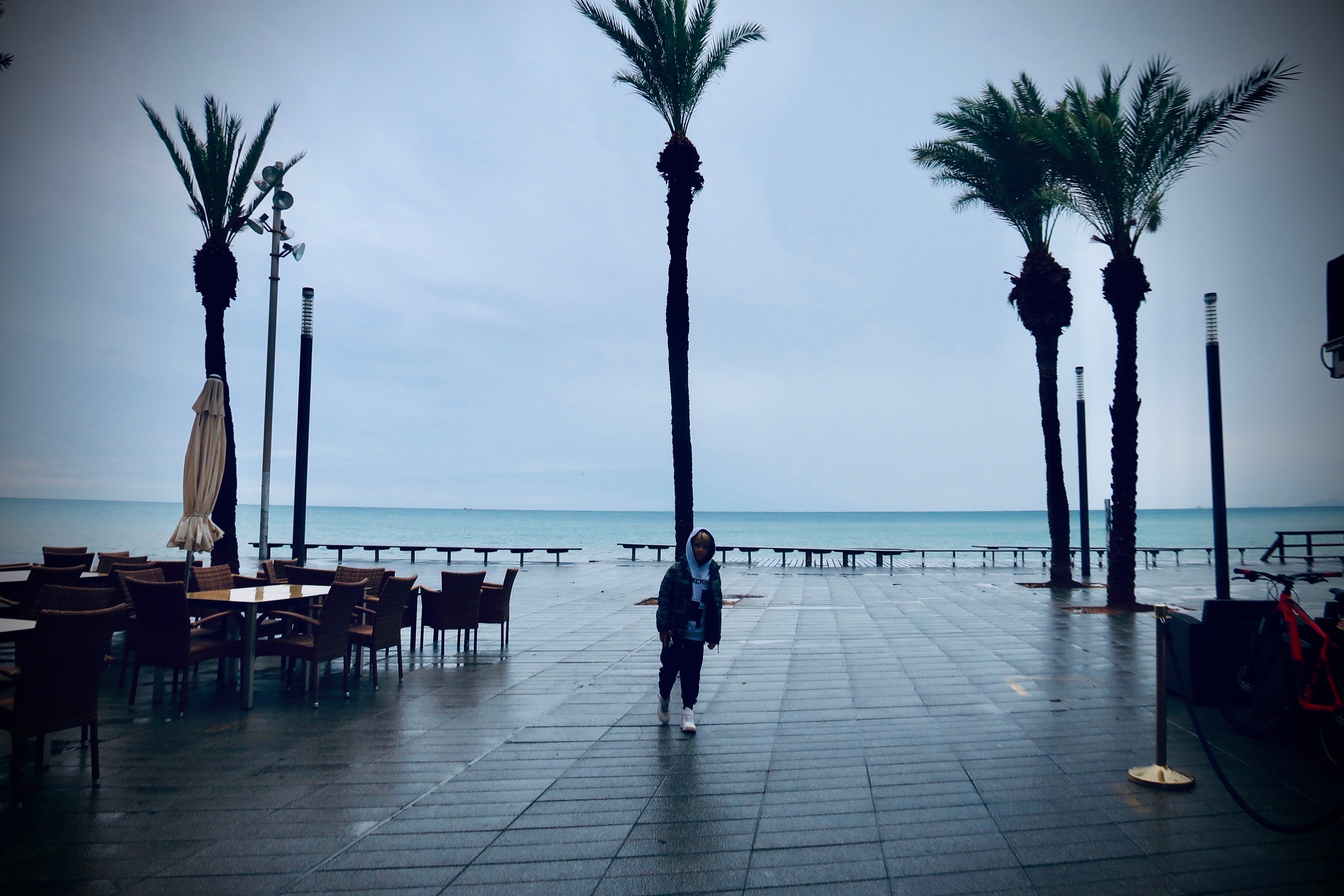 Havet är nästan ännu mäktigare när det är oväder. Skulle kunna sitta här och titta ut en hel dag. Men det blev faktiskt lite kallt denna dag så efter att ha gått runt på stan i några timmar så hamnade vi återigen på samma restaurang och tog lite mellis/lunch är de gjort en inhägnad uteservering med plastväggar medan regnet smattrade utanför. Mysigt!