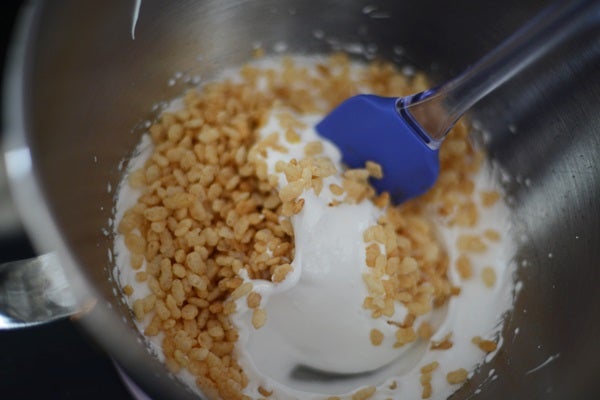 1. Ja exakt samma gör jag som stor tårta !! Googla rice krisp tårta så få du många tips på lika dan fast i tårta !! Jag brukar även ha i lite marabiu mjölkchoklad i krämen och man definitivt är i himlen