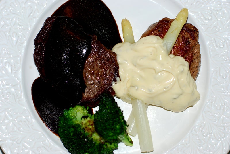 Black & White. Oxfilé med tryffelsås, kalvfilé med beasås.