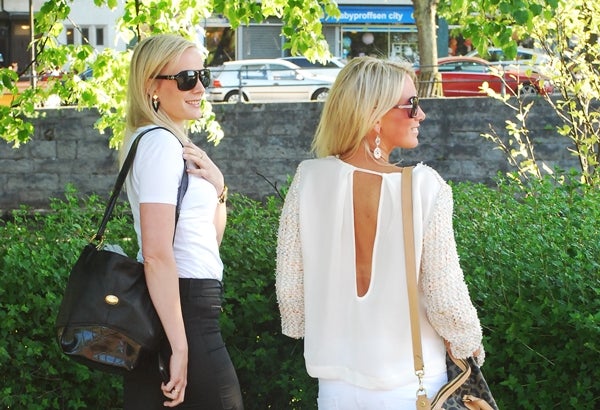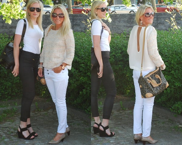 Jag är lite nyfiken på din väninnas byxor och väska. Såg så snyggt ut. Vet du möjligtvis vad det är för märken? Och du är supersnygg – som alltid!