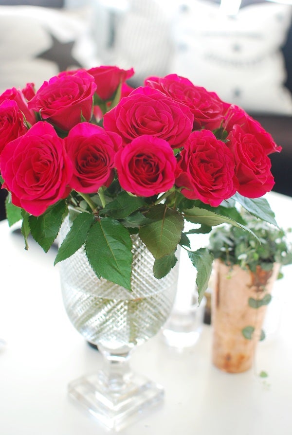 Kommit i fredagsstämning än? Det har jag! Kylen är fylld med skaldjur och ostar – det bästa jag vet! Och på vardagsrumsbordet står färska rosor och strålar fredagsstämning. Däremot strålar det allt annat än fredagsstämning om soffbordet så det åker till tippen i helgen, får nog bli ett Hemnes från IKEA, vi ska ändå dit och köpa två vitrinskåp till matsalen (tack för tips på instagram!!)