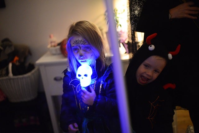 En timma innan den skulle börja kräktes den minste värden och festen ställdes in. Så snopet. Sååå synd. Där stod vi utspökade till tänderna och kände väl inte för en hemmakväll direkt. Men vi var ett gäng på 5 familjer med barn som skulle gått så vi gick runt området och knackade ”Bus eller godis” som planerat och sen gick vi hem till en av grannarna och beställde pizzor och hade det trevligt där istället.