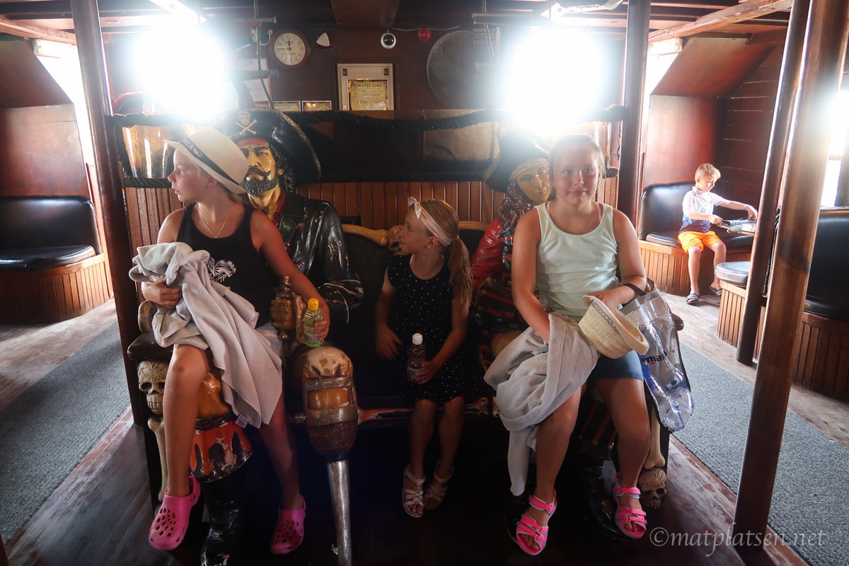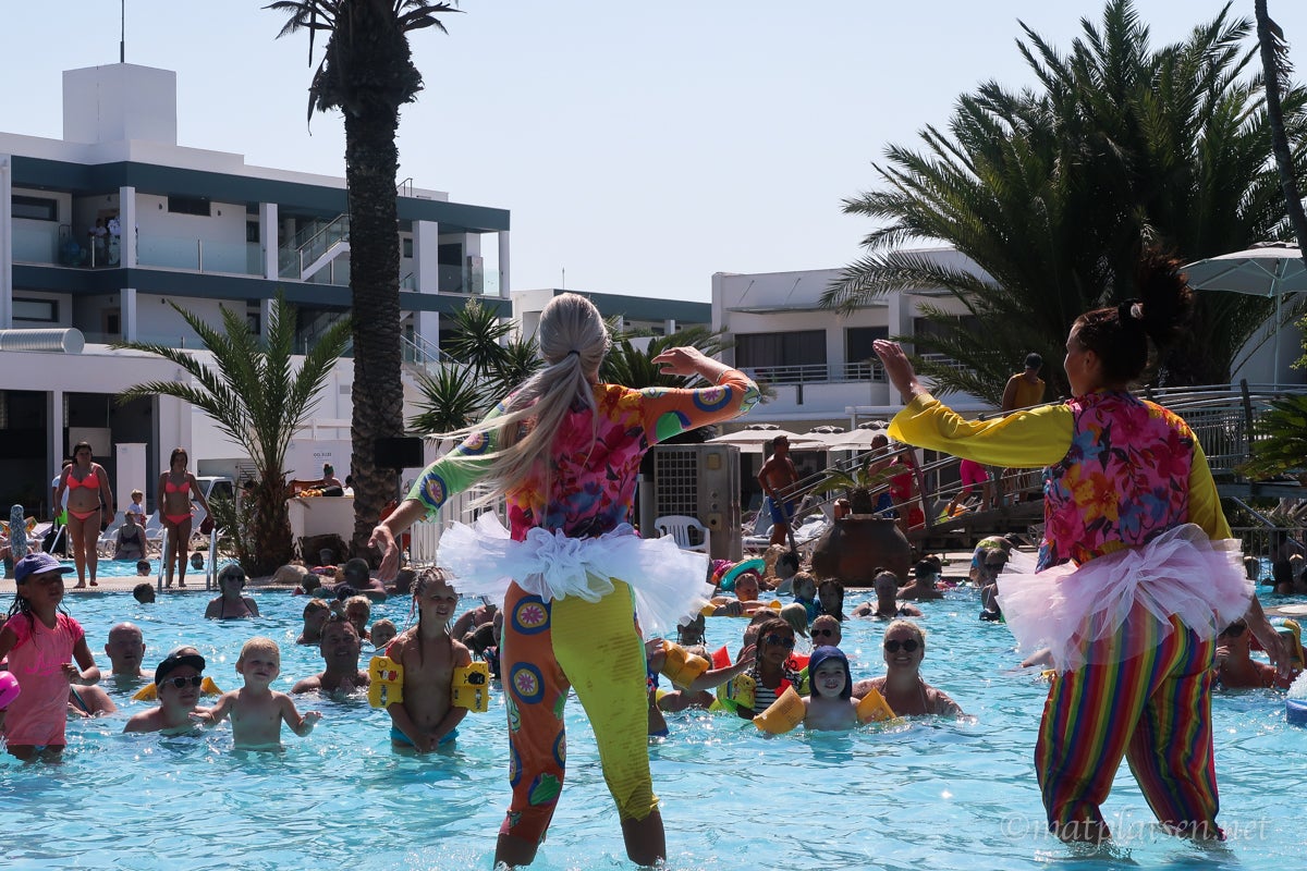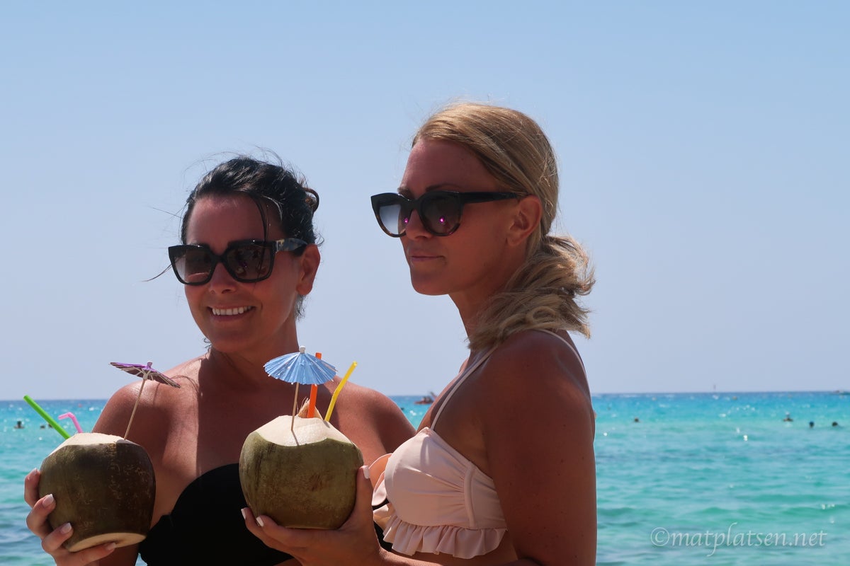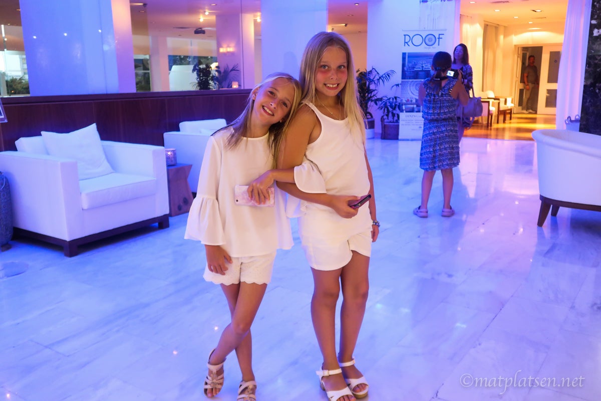 Den utsöta flamingon köpte jag HÄR, ska ha i vårt lilla spabad i vinter 🙂   Vi föredrar poolerna så här men tog oss till stranden en dag (kort promenad från hotellet bara). Jättefint vatten, så där idyll-turkost och så varmt så det kändes inte att man gick i.   Tycker ni hatten ser lustig ut så är det för att Åse satt på den kvällen innan, haha.     Som alltid är det jag går i mest och nästan bara om somrarna sandaler från Rieker. Finns inget skönare! Så alla ni som har en resa inplanerad nu eller i vinter, passa på att förse er med ett par medan de finns i butik (Just dessa heter 62851-60, så himla fina och passar till allt.) Kan gå mil efter mil i dessa. Unnade oss en äkta pinacolada i kokosnöt på beachen, gjord på färskt kokosvatten men det visade sig att jag var allergisk mot det (tydligen en stenfrukt). Men snygg var den 🙂     Åt i princip på samma ställen vi brukar. En del på hotellet men även på Hokkaido, Los Bandidos, Sage, Terazza.. Enda nya (värt att tipsa om) var Roof Burger Bar som vi besökte en kväll.   Första middagen åt vi på Hokkaido, nån blev trött och somnade på stolen <3 Kul med showande kockar och god (och mycket) mat. (Min kvällens var svart klänning H&M och kimono Odd Molly)       (Klänning H&M, sandaler Rieker, solglasögon Missoni – som jag tyvärr tappade bort någonstans buhu) Nästa middag blev Los Bandidos. Det var Cyprioternas lediga vecka när vi var där så det var lite svårt att få bord, fick tag i det sista och hamnade lite i skymundan tyvärr och ljuset var hopplöst att fota mat i men den var god 🙂     Sage är alltid ett säkert kort, har så himla god mat och fin lokal. Dit måste ni gå! (Och barnen bara älskar broocolisoppan man får som en aptitretare).   Min kvällens här var klänning från H&M och Olivias från MOLO Hade lite problem att nå Terazza på telefon för bokning så vi chansade och åkte dit, var själva på restaurangen. Kanske fler som hade problem. Terrazza ägs av svenska Leif och han var där i vanlig ordning och bjöd på drinkar. Trevligt!     Och Roof Burger bar då som sagt, fick tips av en läsare om detta ställe. Lite stressad personal men riktigt riktigt goda hamburgare och vacker utsikt. (Mindre goda drinkar, håll er till vinet. Fick skicka tillbaka Mickes Mojito och min drink smakade surt diskvatten). Små minibrugare till barnen som uppskattades, jag valde en med ägg i (det är ju såå gott i hamburgare) och tryffelmajo. Mums!  (Blev akut sugen på hamburgare nu, det får nog bli middagen i kväll).   Min kvällens var min absoluta favoritklänning i sommar (tänker fin i höst med tights och långkofta) DENNA. Bästa köpet i sommar! Hotellet i all ära, barnen hade jättekul – det finns lekland med pyssel och filmer (och Lollo & Bernie klubben, där var bara Sebbe) datorer och spel, pooler rutschkanor osv..       ..men en dag bokade vi en utflykt med en piratbåt, Black Pearl. Den var borta i 5 timmar om jag minns rätt, det ingick lunch ombord (den var inget vidare) och pirater ordnade lekar för barnen och showade. Vi stannade vid ett par ställen där man fick hoppa av båten ner i det klaraste vatten jag nånsin sett. Såååå mäktigt!     På hotellet är det show nästan varje kväll, det hör till hela semesterkänslan tycker jag, vi satt bänkade varje kväll! Grymt gäng som uppträdde denna gång, ett av de bättre jag hört.     Sebbe var nog den enda som tyckte Lollo & Bernie var spännande detta år, kanske dags att prova något nytt. Åse & jag unnade oss en massage en dag i spa-delen. Då ingick tillträde till deras privata pool en hel dag så vi stannade till där och chillade en stund när resten av gänget gick på ”after beach”. Rofyllt!     Fick så många frågor om mina badtofflor, visst är de söta! Sköna också, använde dem både dag- och kvällstid. Finns HÄR (och i rosa HÄR)   Klänningen är från H&M, väskan Louis Vuitton och solglasögon Twist & Tango.   Nästa år tror jag de rummen vi bodde i kommer tillhöra OBC, den nybyggda lite fräschare och lite lyxigare hotelldelen som ligger bredvid. Vi kikade in och spanade lite snabbt, såg väldigt fint (och vitt) ut.     GRYM semester på alla sätt och vis. Vi åt så gott, hade det så varmt och skönt, bodde toppen och hade det bästa sällskapet. Kom hem så nöjda med sommaren (trots brist på värme här hemma) och fick det perfekta avslutet.     Tack för denna gång Cypern! (Och tack till er som orkade läsa hela detta mastodontlånga inlägg hehe)   KRAM